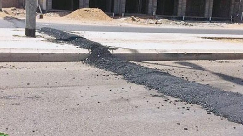 وبحسب شهود عيان فإن عمال شركة المقاولات وهم من إحدى الجنسيات الآسيوية، قاموا بإنشاء هذا المطب على الطريق الرئيس وأصروا على امتداده فوق رصيف المشاة، وبالرغم من مرور عدد من الجهات المختصة بهذا الطريق، لم تتدخل أي جهة لإزالة المطب من فوق رصيف المشاة.