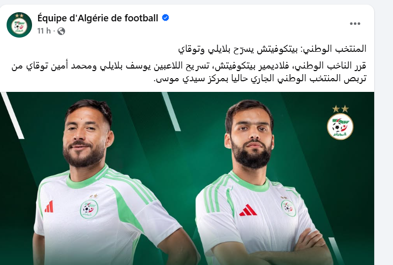 وأعلن الاتحاد الجزائري لكرة القدم، الجمعة، أن الناخب الوطني فلاديمير بيتكوفيتش قرّر تسريح بلايلي وتوغاي.
