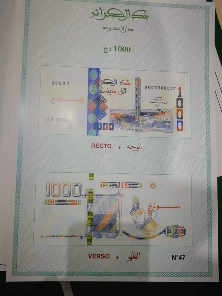 الورقة النقدية من فئة 1000 دينار جزائري جاءت كالتالي: