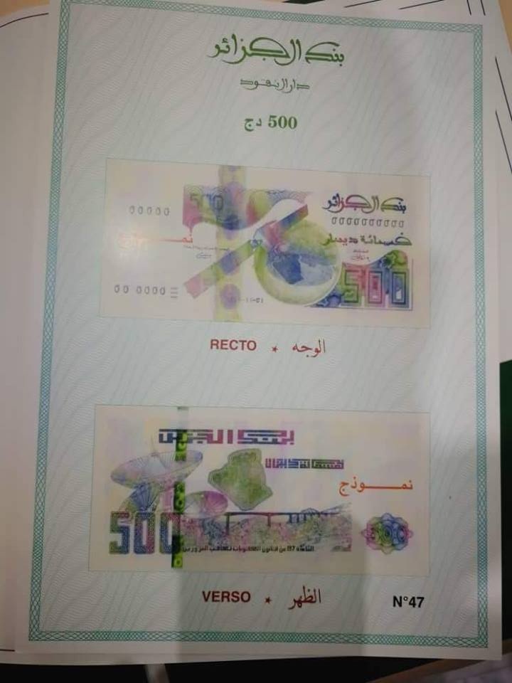 الورقة النقدية 500 دينار جزائري جاءت كالتالي: