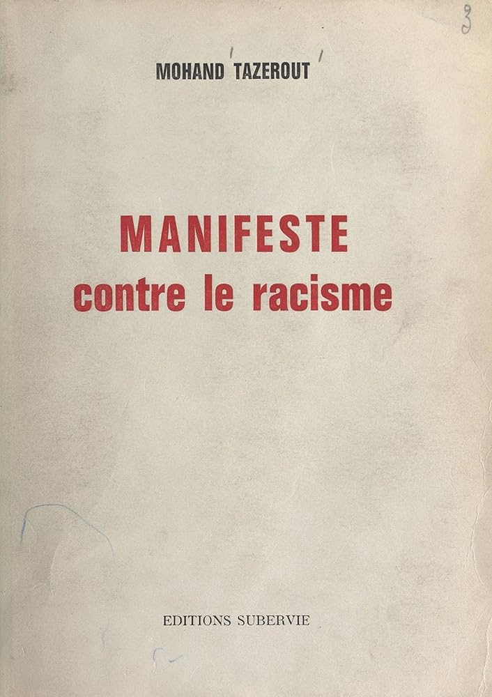 غلاف كتاب محند تازروت “بيان ضد العنصرية”، والذي نشره في 1963، لدى منشورات “سوبيرفي”. صورة: حقوق محفوظة