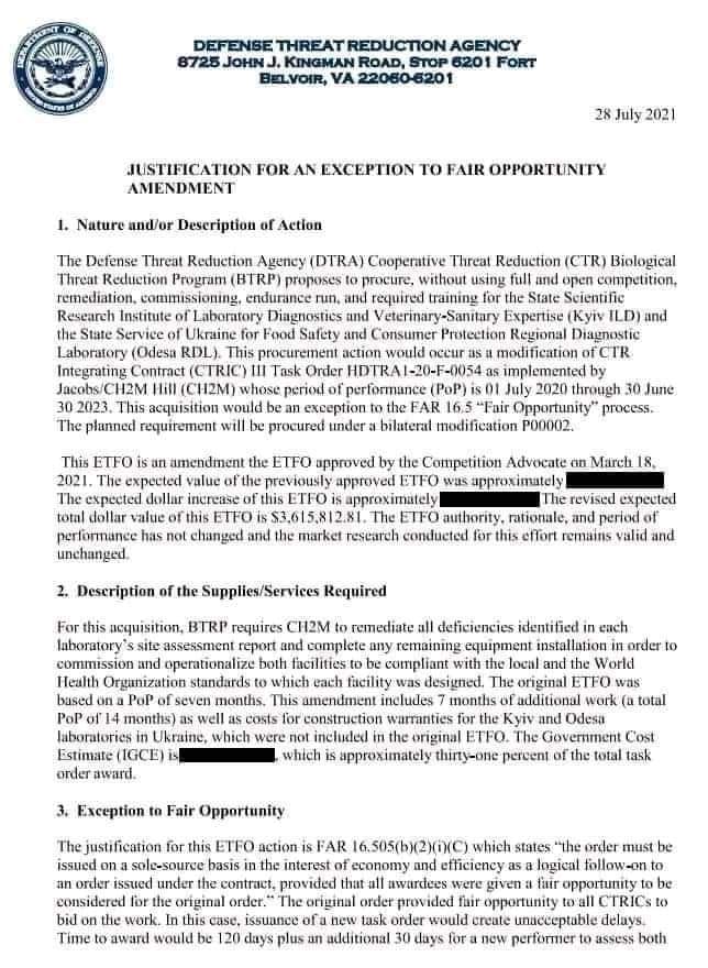 وقال كونوشينكوف إن الوزارة بصدد تقديم وثائق حول تصدير كمية كبيرة من المواد الحيوية البشرية من أوكرانيا إلى بريطانيا ودول أوروبية أخرى. بعد الحصول عليها من الموظفين الأوكرانيين العاملين في تلك المخابر.