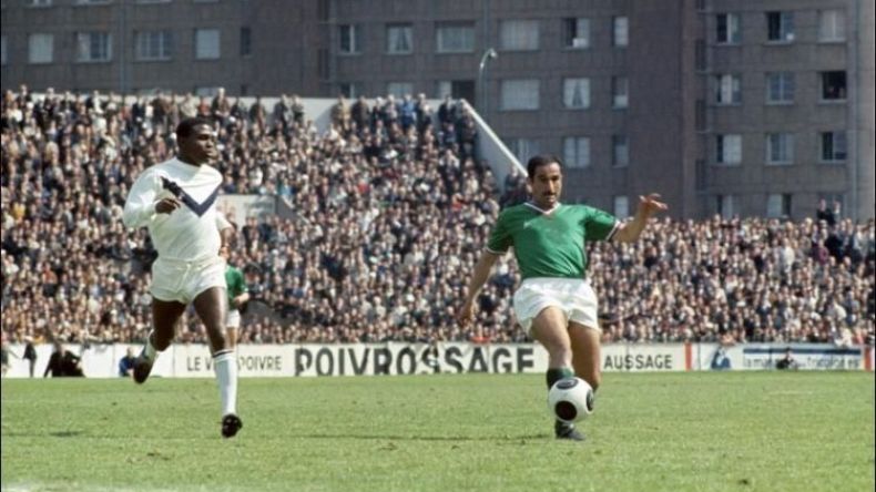 رشيد مخلوفي (من اليمين) في إحدى مقابلات فريقه سانت إيتيان منتصف القرن الماضي.
