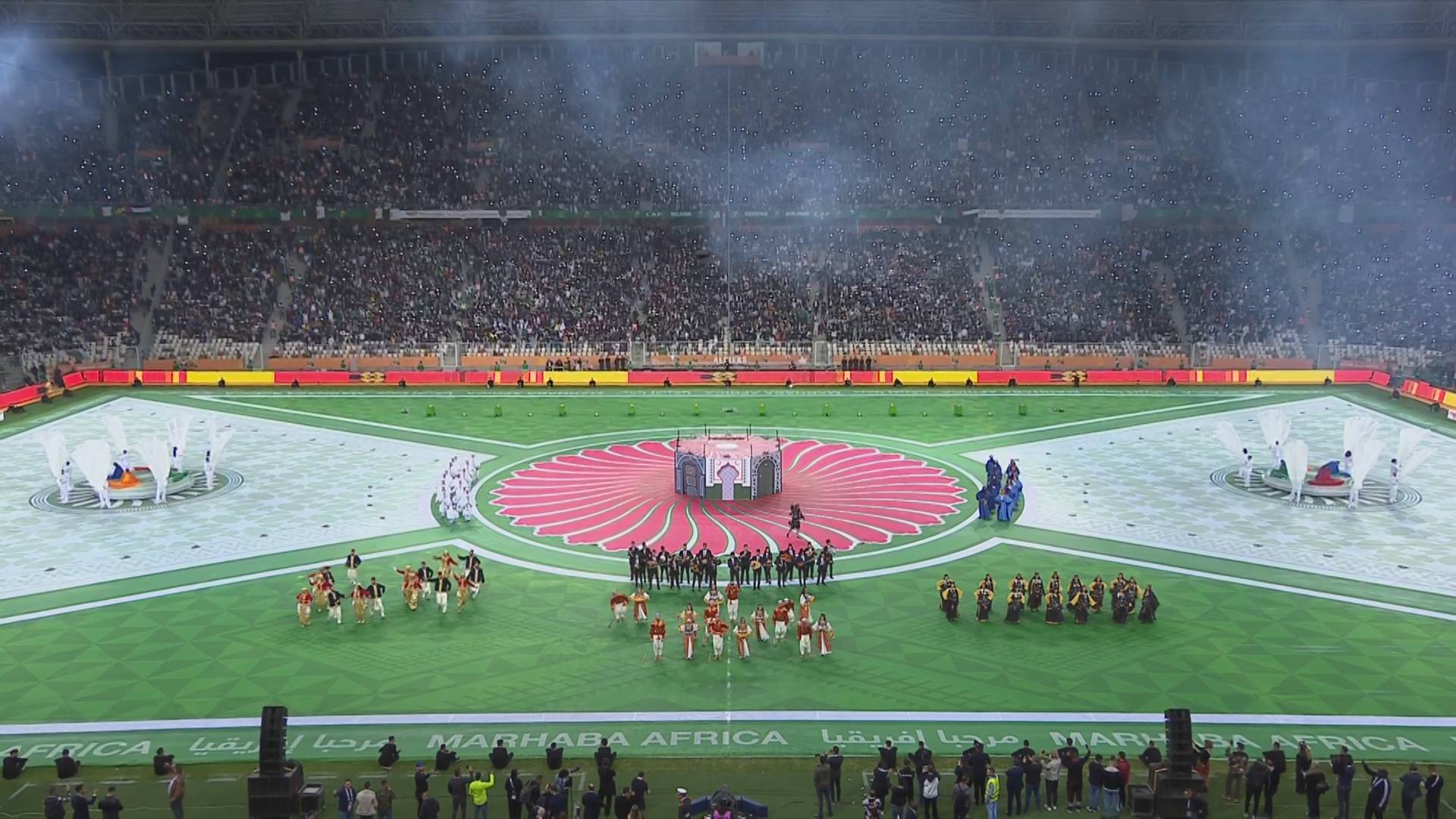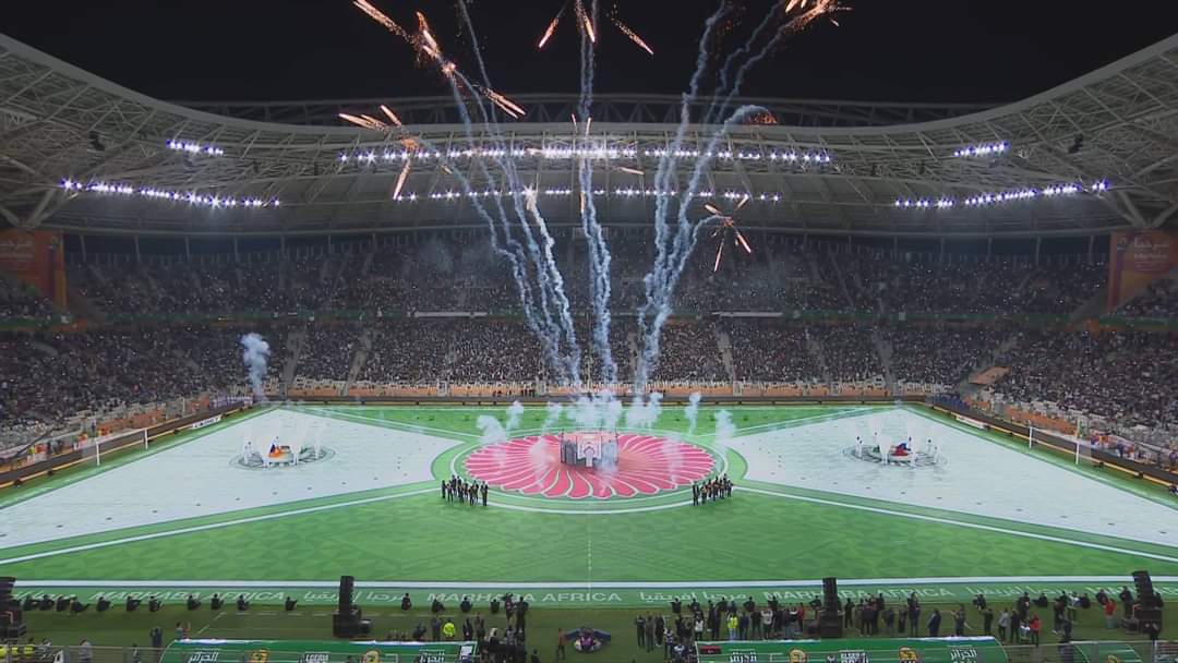 هذا وشهد ملعب “نيلسون مانديلا” أجواء خيالية، خلال حفل افتتاح “الشان”، حيث تزينت سماء الملعب بالأضواء والألعاب النارية المتنوعة.
