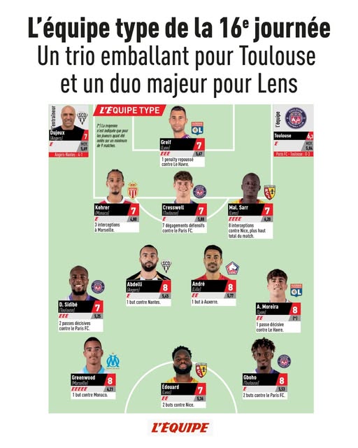 اختير لاعب وسط ميدان أنجي، حماد عبدلي، ضمن التشكيلة المثالية للجولة الـ16 من الدوري الفرنسي.