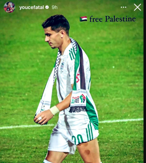 وعبّر لاعب نادي نيس يوسف عطال، عن تضامنه مع الشعب الفلسطيني، وما يتعرض له من حرب إبادة من طرف الكيان الصهيوني، حيث نشر على حسابه عبر “انستغرام” صورة له، وهو يتوشح الكوفية الفلسطينية، وأرفقها بعبارة ” الحرية لفلسطين”.