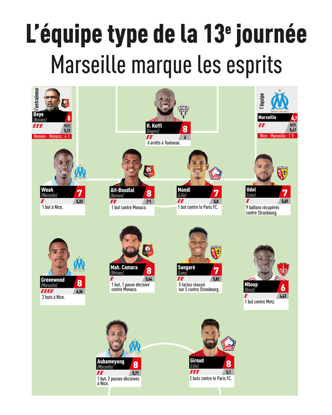 تواجد مدافع نادي ليل، الدولي الجزائري عيسى ماندي ضمن التشكيلة المثالية للجولة الـ13 من الدوري الفرنسي.