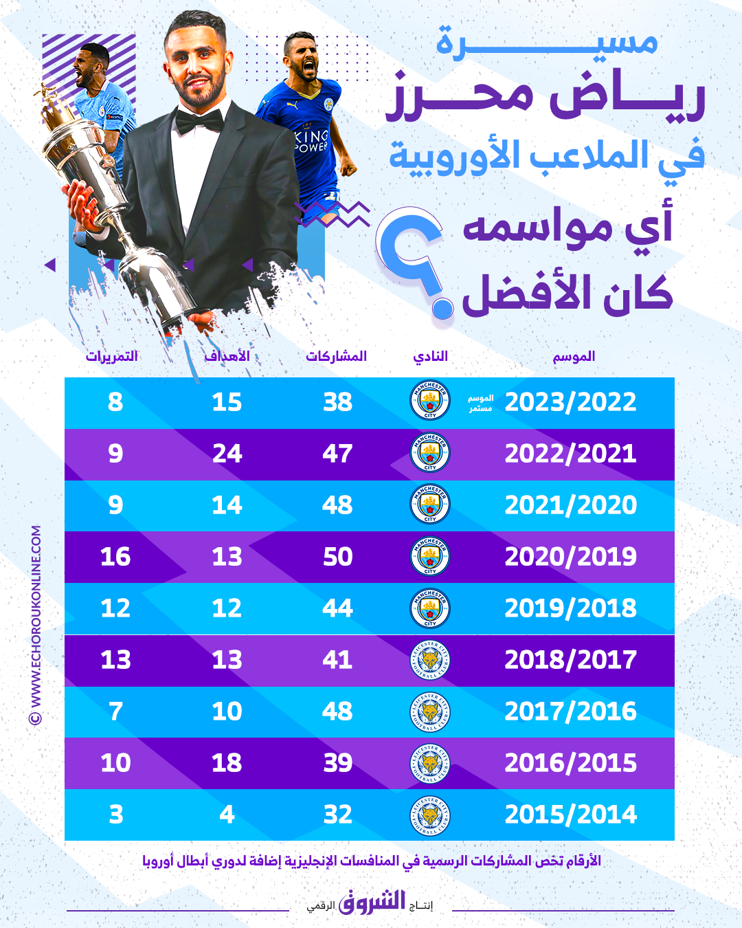 مسيرة رياض محرز في الملاعب الأوروبية أي مواسمه كان الأفضل؟