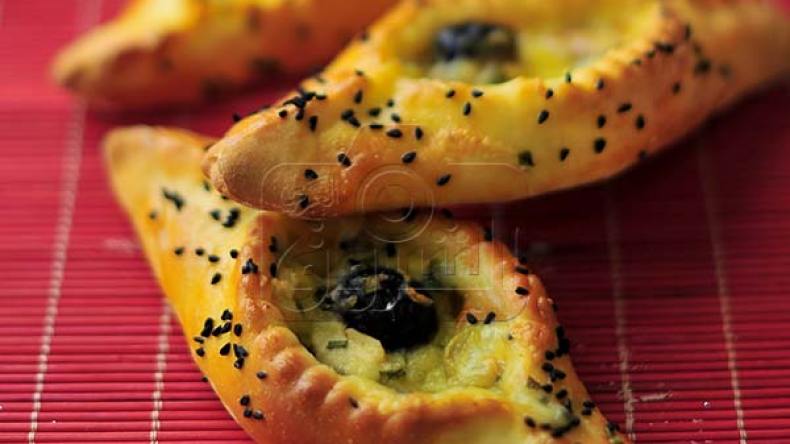 المقادير:حبة بيض125مل زيت200غ ياغورت طبيعي200مل ماء دافئ30غ خميرة خبز660غ فرينةملعقة كبيرة سكر ملعقة صغيرة ملح300غ جبن مبشور250غ جبن أبيضملعقة كبيرة سانوجفص ثومزيتون أسود