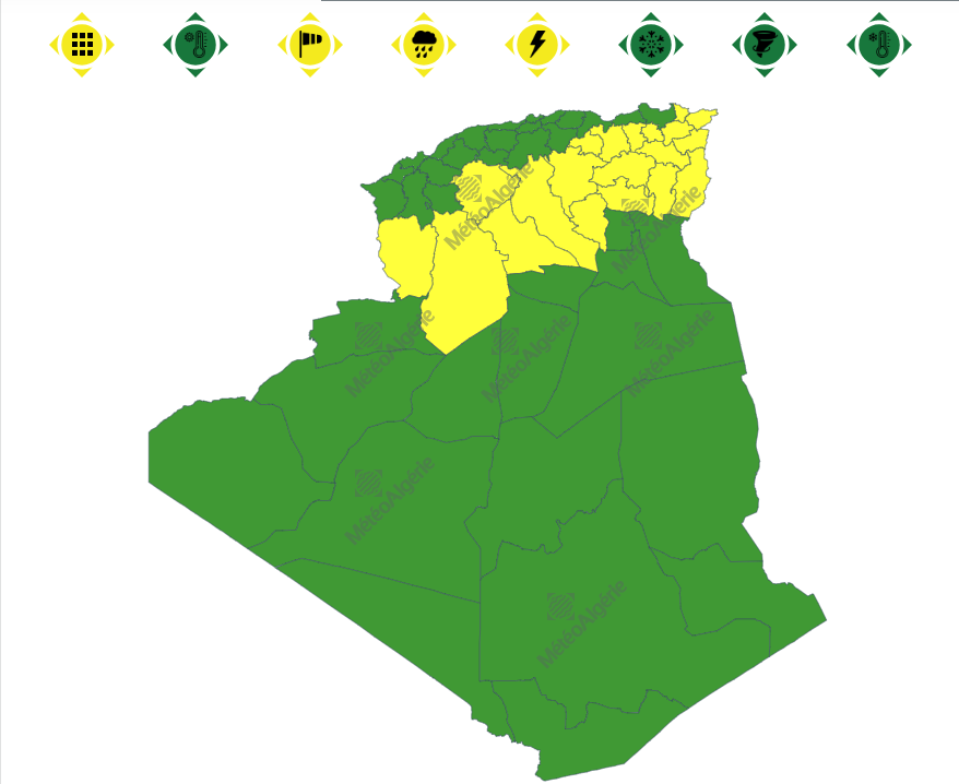 نبه الديوان الوطني للأرصاد الجوية في نشرية جديدة حول حالة الطقس ليوم الأحد، من تساقط أمطار رعدية غزيرة عبر عدة ولايات.