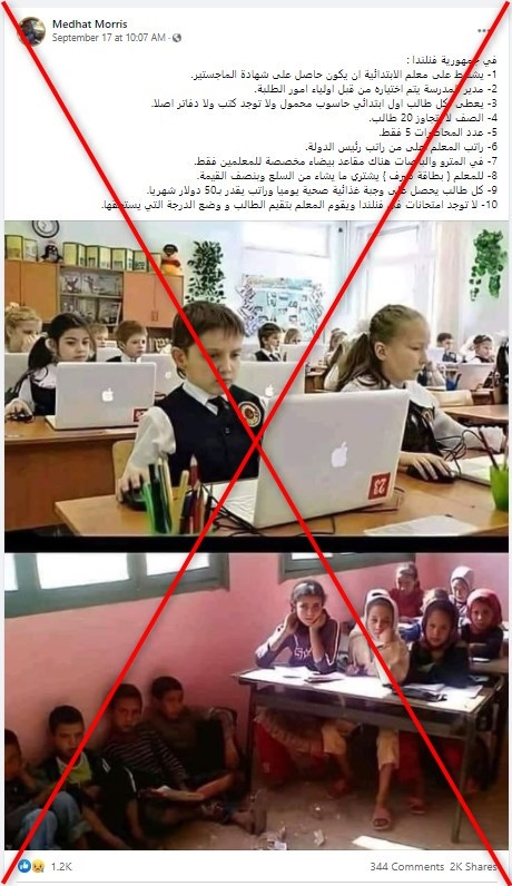 تناقلت مواقع التواصل الاجتماعي معلومات تتحدث عن تلقي المعلم راتبا أعلى من الرئيس والتخلي عن الكتب في فلندا.