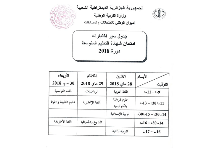 وزارة التربية تنشر جداول الامتحانات الرسمية