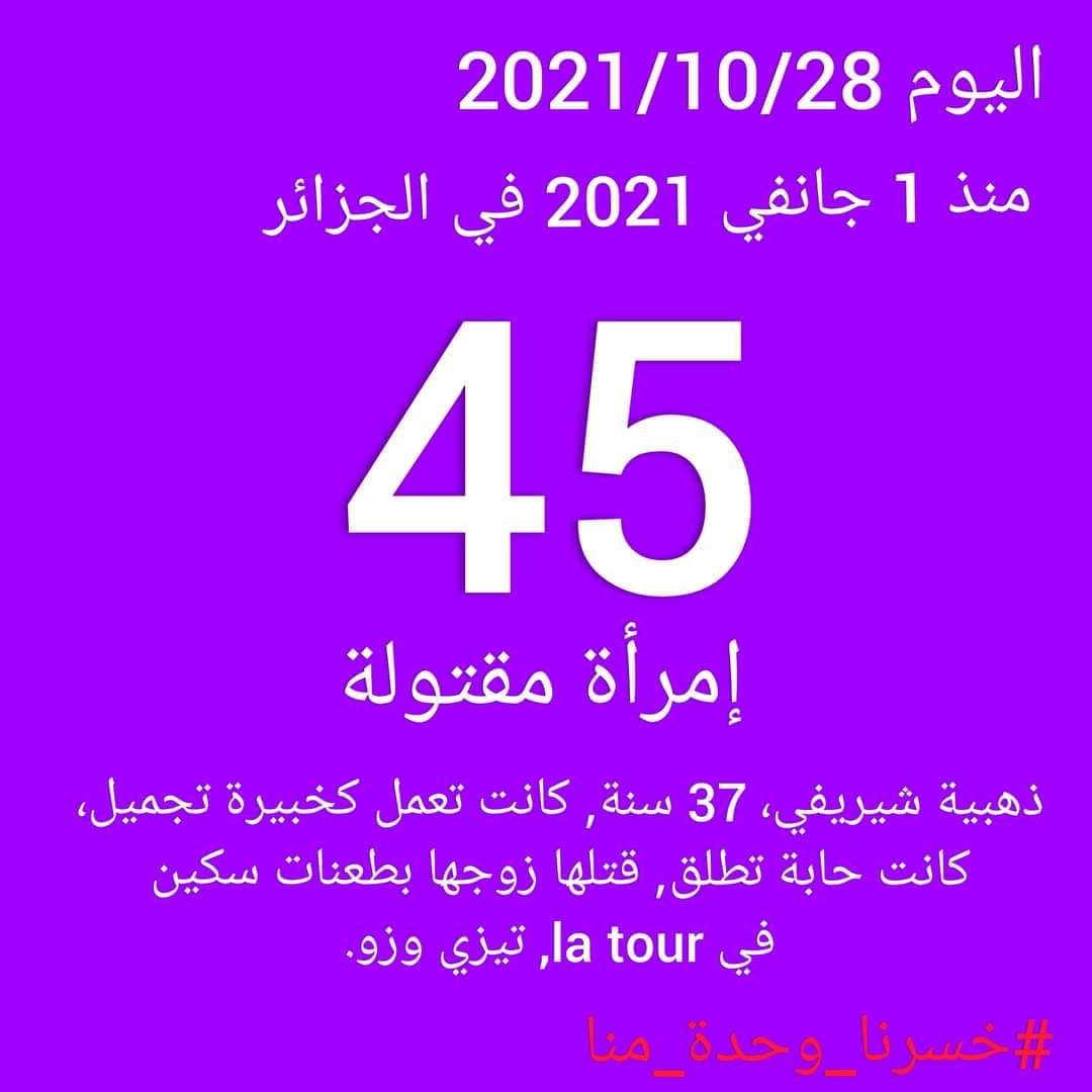 آخر الإحصائيات.. قتل 45 امرأة منذ بداية العام 2021