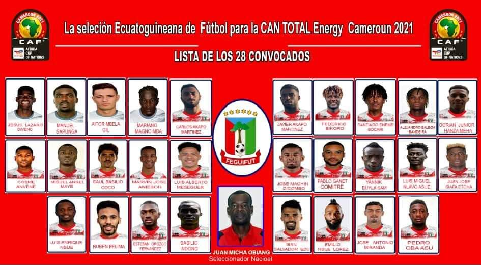 نشر اتحاد غينيا الاستوائية لكرة القدم، الإثنين، قائمة اللاعبين الـ 28 الذين سيُمثّلون منتخب بلاده في نهائيات كأس أمم إفريقيا بِالكاميرون.