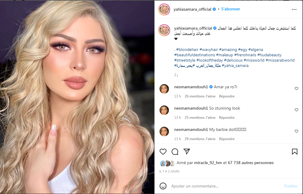 وأثارت ملكة جمال الجزائر السابقة سمارة يحيى، وزوجها “أبو جبل” جدلا واسعا عبر مختلف الشبكات عقب خسارة المنتخب المصري في نهائي كأس الأمم الإفريقية، بعدما ألغيا متابعة بعضهما عبر إنستغرام وحذفا جميع الصور التي تجمعهما سويا.