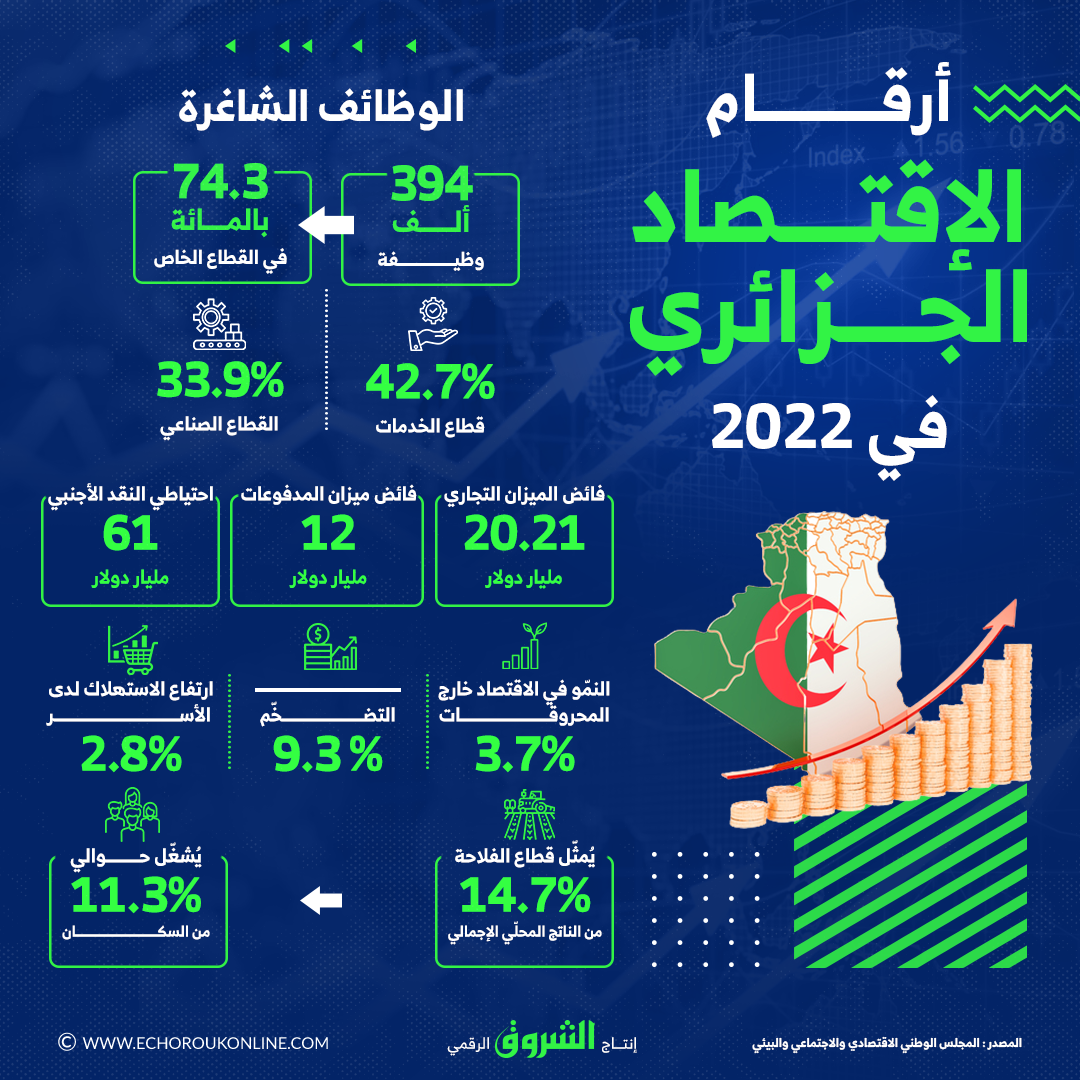 تعرف على أرقام الاقتصاد الجزائري في 2022: