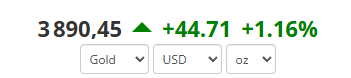 وحسب بيانات أسعار الذهب فإن العقود الآجلة لمعدن الذهب صعدت بنسبة 1.16% أو ما يعادل 18.4 دولارًا، لتصل إلى 3890.45 دولارًا للأوقية بحلول الساعة 10:50 صباحًا. في حين تراجعت عقود التسليم الفوري بشكل طفيف بنسبة 0.01% إلى 3858.48 دولارًا للأوقية.