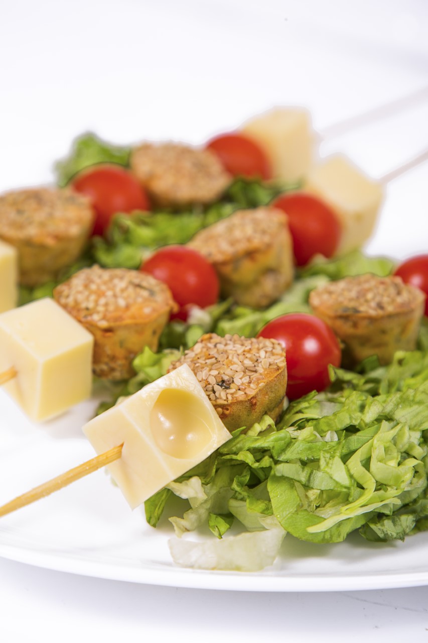 أسياخ “الميفين” والطماطم الكرزية والجبن