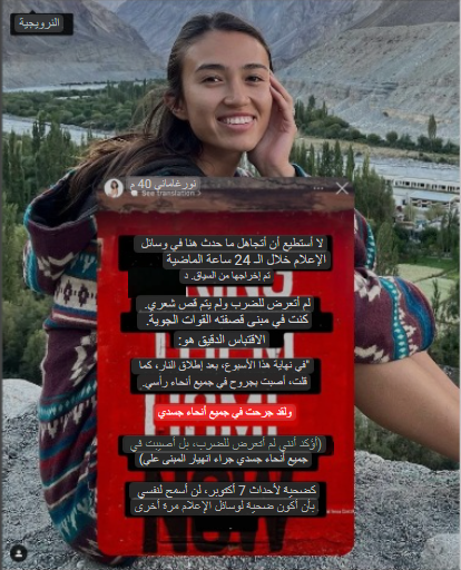 وتابعت قائلة “عناصر القسام لم يضربوني ولم يقصوا شعري في الأسر بل أصبت في انهيار حائط نتيجة غارة إسرائيلية”.