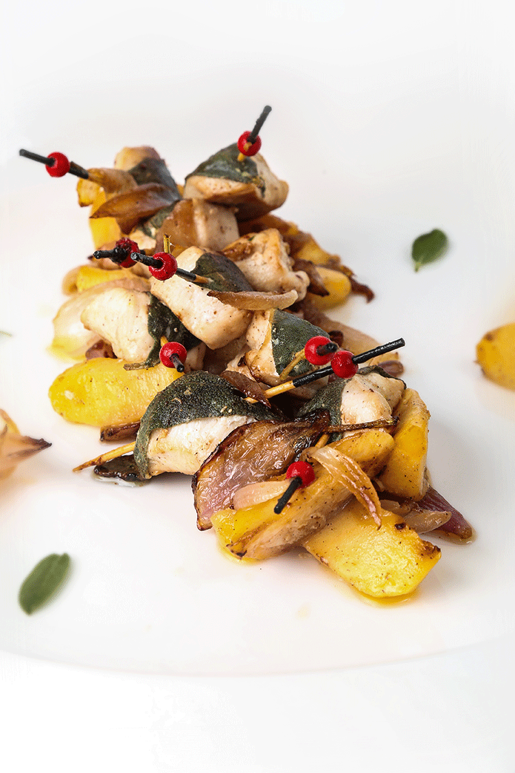 طبق الدجاج بالمريمية والتفاح