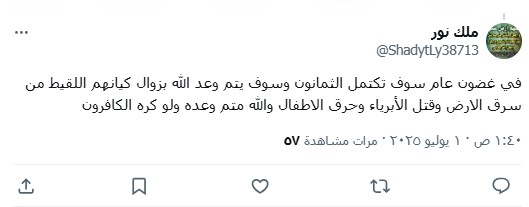 بينما استبشر أحد النشطاء خيرا، وغرّد: “في غضون عام، سوف تكتمل الثمانون وسوف يتم وعد الله بزوال كيانهم اللقيط، من سرق الارض وقتل الأبرياء وحرق الاطفال والله متم وعده ولو كره الكافرون”.