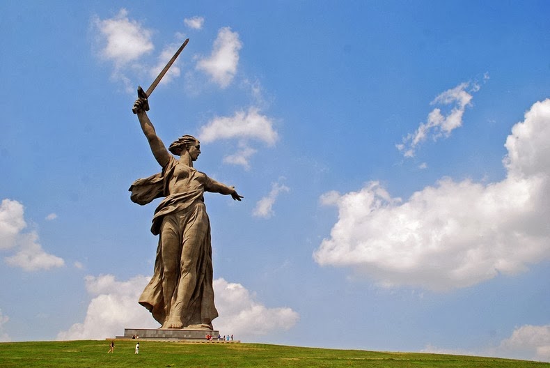 يقع التمثال على هضبة ماماييف كورغان التي تطل على مدينة فولغوغراد وهي مدينة ستالينغراد التي كانت إحدى ساحات المعارك الرئيسية في الحرب العالمية الثانية حيث قُتل مليونا شخص خلال معركة ستالينغراد الشهيرة.