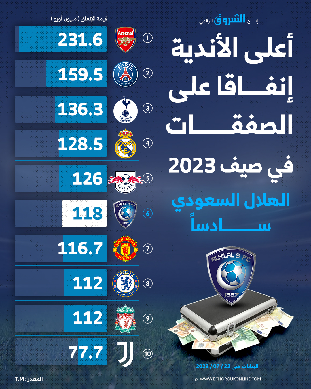 أعلى الأندية إنفاقًا على الصفقات في صيف 2023