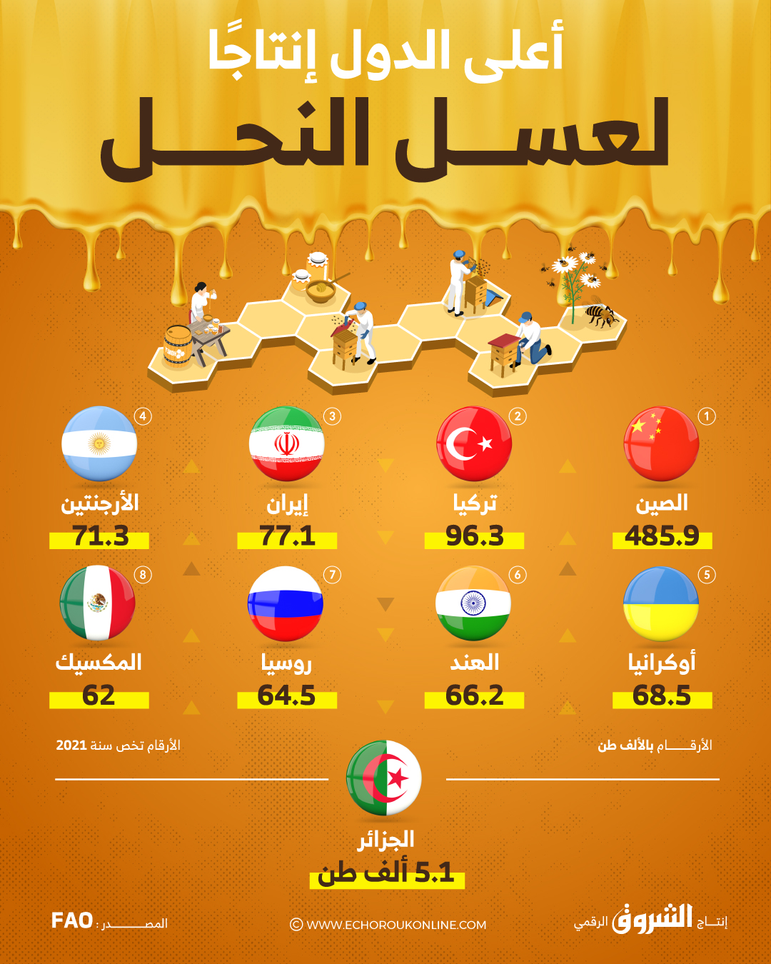 أعلى الدول إنتاجاً لعسل النحل في العالم