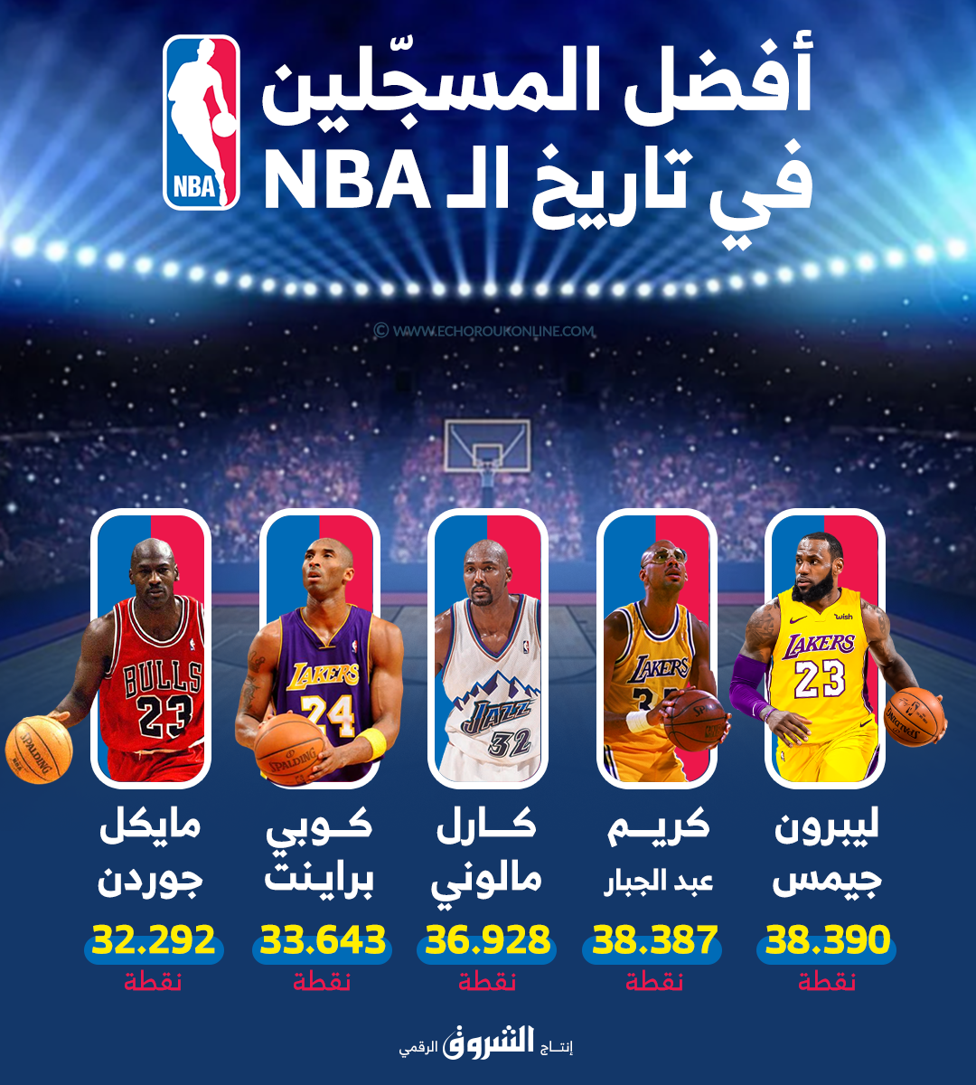 أصبح ليبرون جيمس أفضل هدّاف في تاريخ دوري كرة السلة الأمريكي للمحترفين، بعدما حطم رقم كريم عبدالجبار الذي تم تحقيقه قبل 39 عاماً… تعرف على أفضل المسجلين في تاريخ الـ NBA.