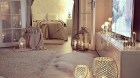 *ضعي الإضاءات الشبيهة بالشموع بجانب الوسائد الصغيرة على الأرض والمقاعد لتعطي الأجواء المنزلية الدفء والحياة والتجدد واختاري وسائد الجلد والفرو والصوف الناعم بالألوان الترابية والرمادية والسوداء الدافئة.