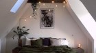 *ضعي في ركن الصالون او الغرفة بجوار النافذة مقعدا مريحا حوله مجموعة معلقة من الإضاءات المختلفة والتي ستعطي الغرفة جمالا ودفءا مميزا،إضافة للشموع على الطاولة الجانبية.