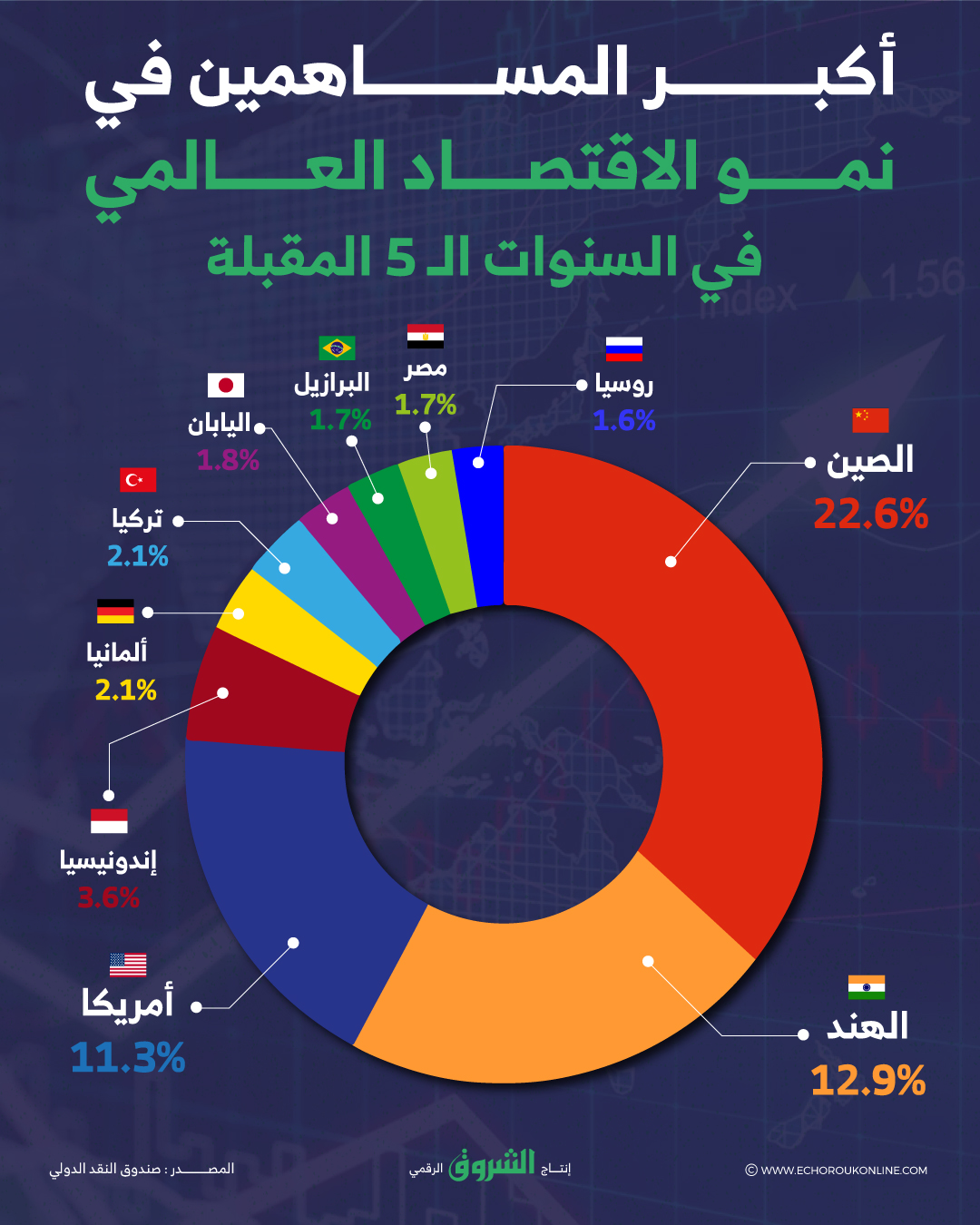 أكبر المساهمين في نمو الاقتصاد العالمي في السنوات الخمس المقبلة