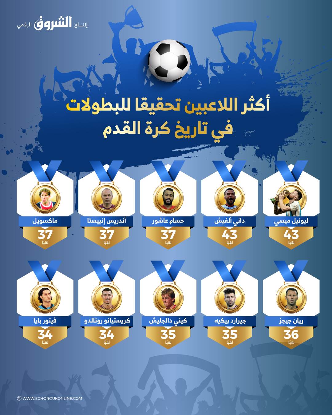 أكثر اللاعبين تحقيقا للبطولات في تاريخ كرة القدم