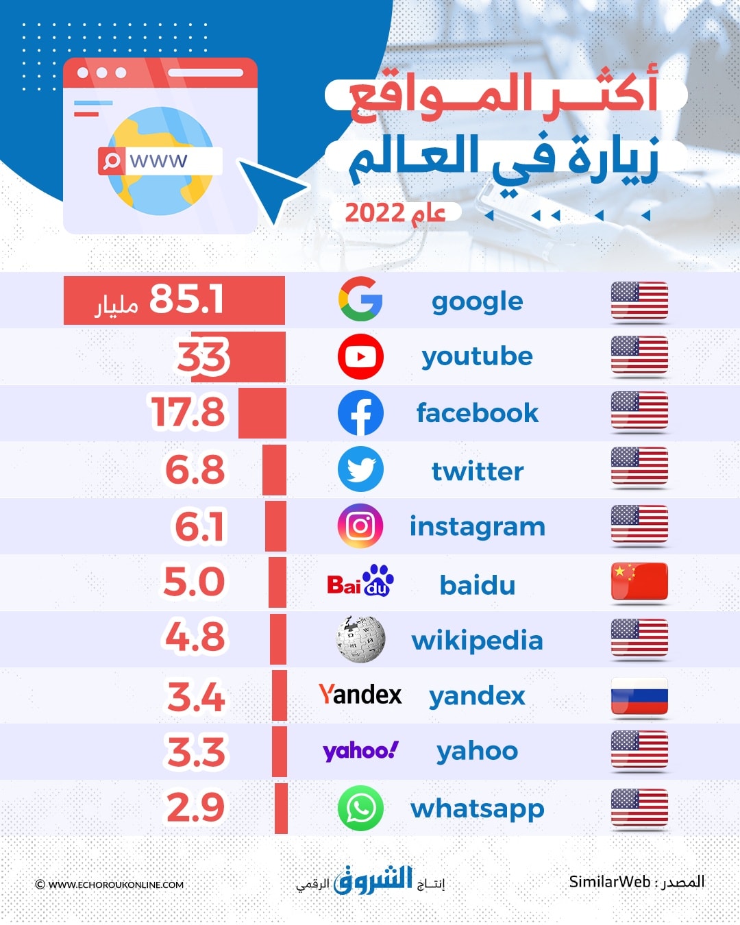 أكثر المواقع زيارة في العالم