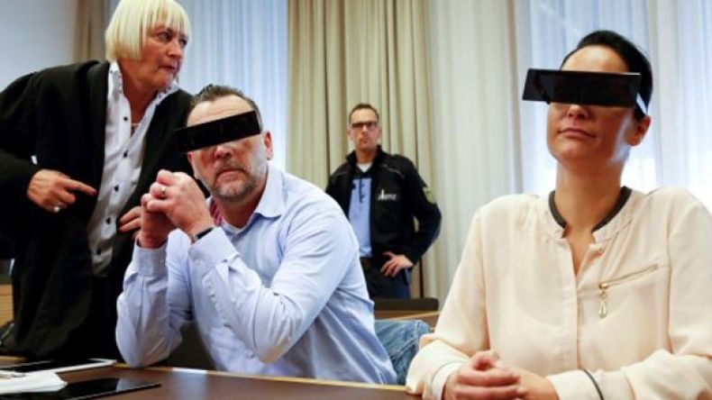 مؤسس حركة بيغيدا لوتز باكمان وزوجته فيكي في المحكمة في دريسدن - 19 أفريل 2016