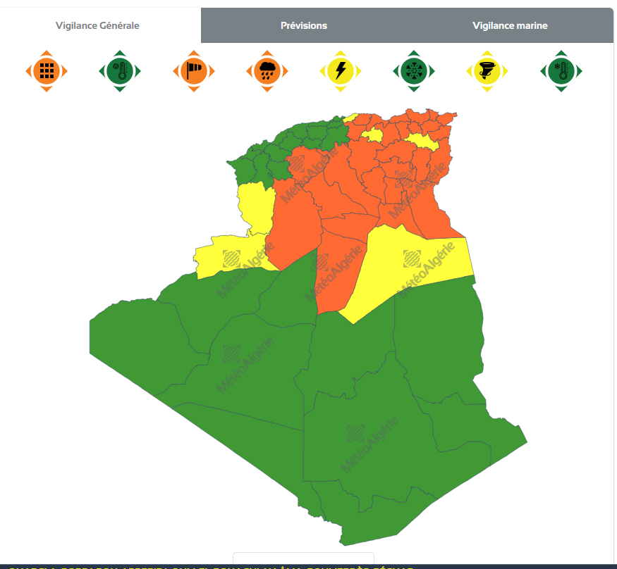 وحسب تنبيه من المستويين الأول والثاني فإن الولايات المعنية بتساقط الأمطار هي: سوق أهراس، بجاية، ميلة، قالمة، تيزي وزو، عنابة، سطيف، قسنطينة، سكيكدة، جيجل، الطارف، بويرة، بومرداس، برج بوعريريج.