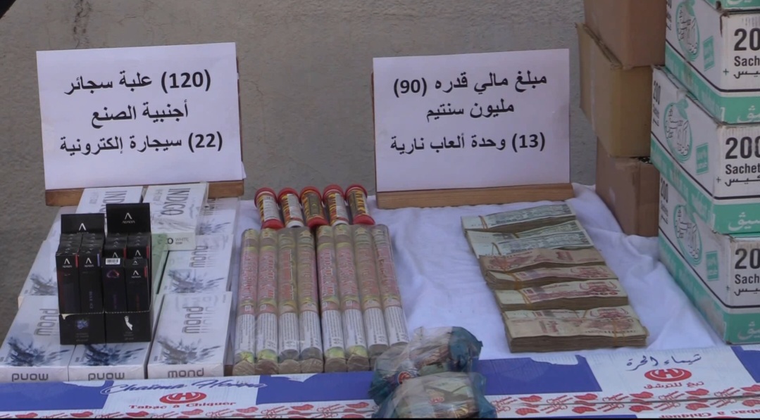 وبعد الحصول على إذن بالتفتيش، أسفرت العملية عن حجز كميات كبيرة من المواد المقلدة، وهي 37,400 وحدة من تبغ الترشق المقلد، 12 علبة سجائر أجنبية الصنع، 22 سيجارة إلكترونية، 13 وحدة من الألعاب النارية. كما تم حجز مبلغ مالي قدره 90 مليون سنتيم.