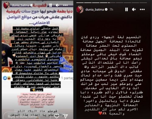 أثارت المغنية المغربية دنيا بطمة جدلا واسعا بإعلان اعتزالها السوشيال ميديا بشكل مفاجئ، تزامنًا مع إلغاء حفلها الغنائي في مهرجان “تيفلت”.