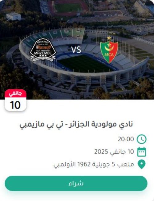وهكذا يُمكن لـ “الشناوة” ارتياد ملعب “5 جويلية 1962″، مسرح مباراة المولودية والضيف نادي مازيمبي من الكونغو الديموقراطية، الجمعة المقبلة على الساعة الثامنة ليلا.