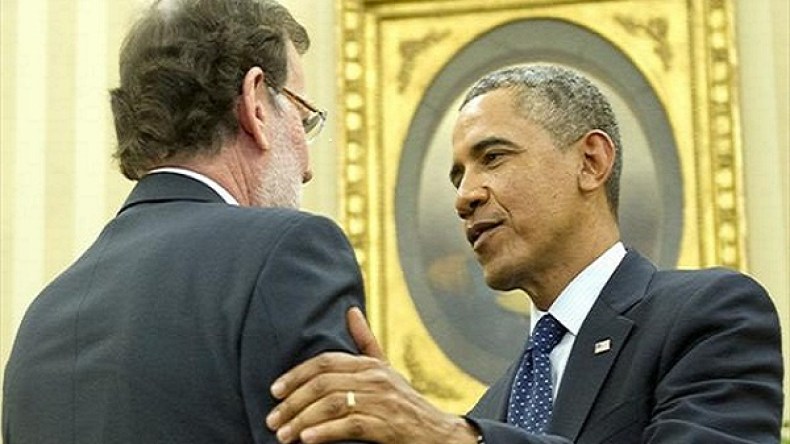 الرئيس الامريكي باراك اوباما مع رئيس وزراء اسبانيا ماريانو روخوي