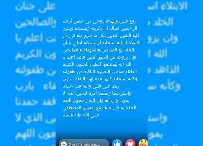 أضافت الفنانة المعتزلة: “يا رب اربط على قلبي وأبيه فقد حمدنا واسترجعنا وسلمنا أمرنا للحي الذي لا يموت، وإنا لله وإنا إليه راجعون.. اللهم الحقنا به في جنتك مع الحبيب المصطفى صل الله عليه وسلم”.