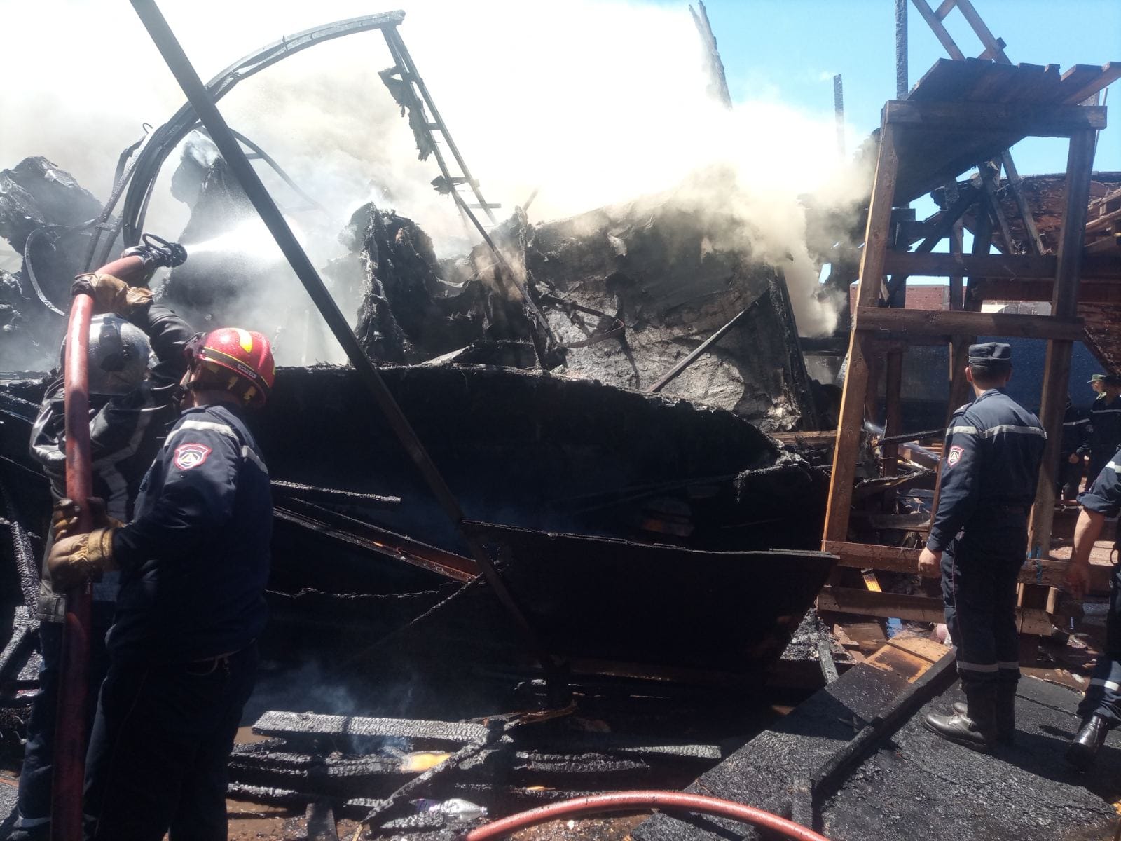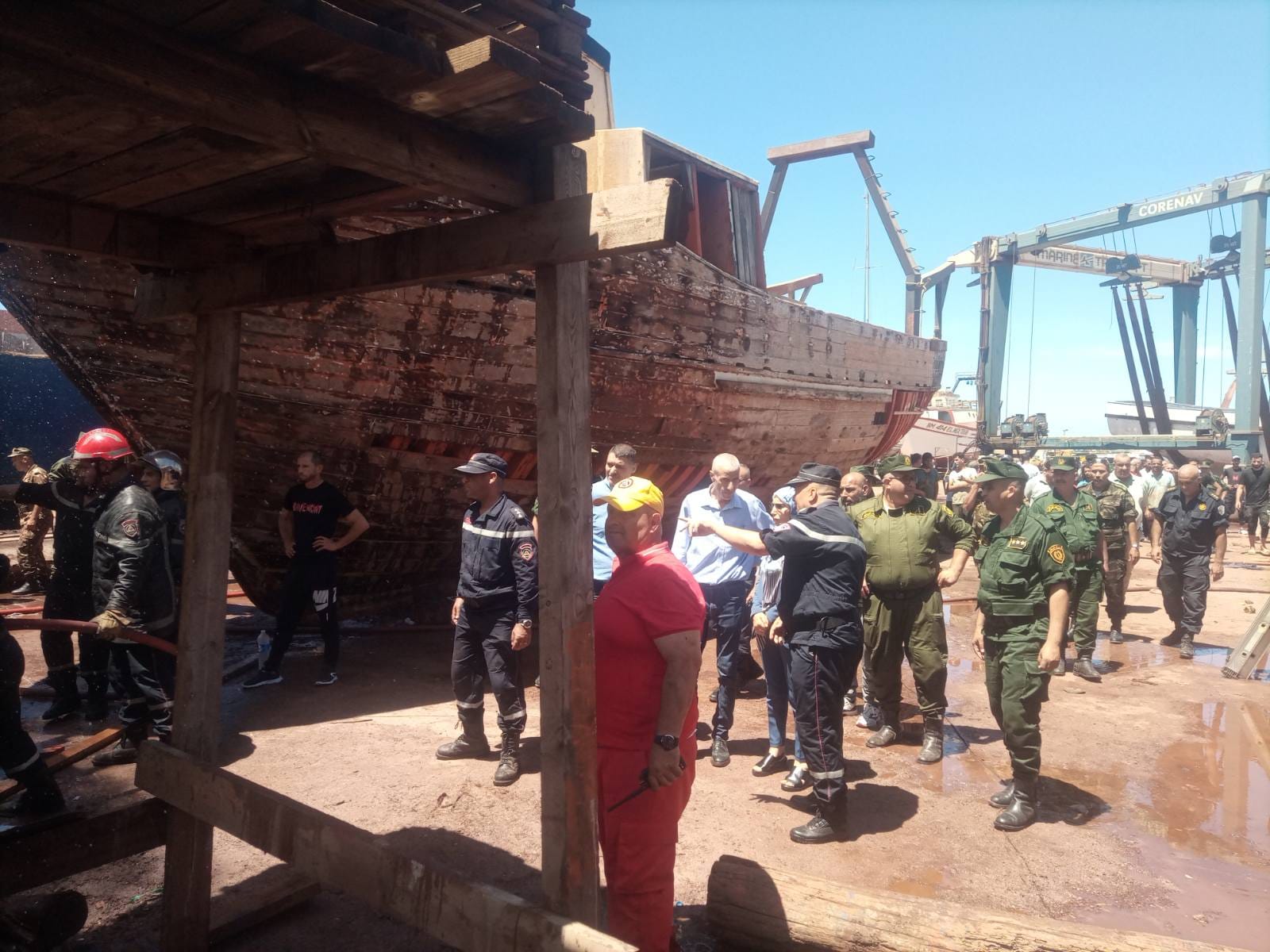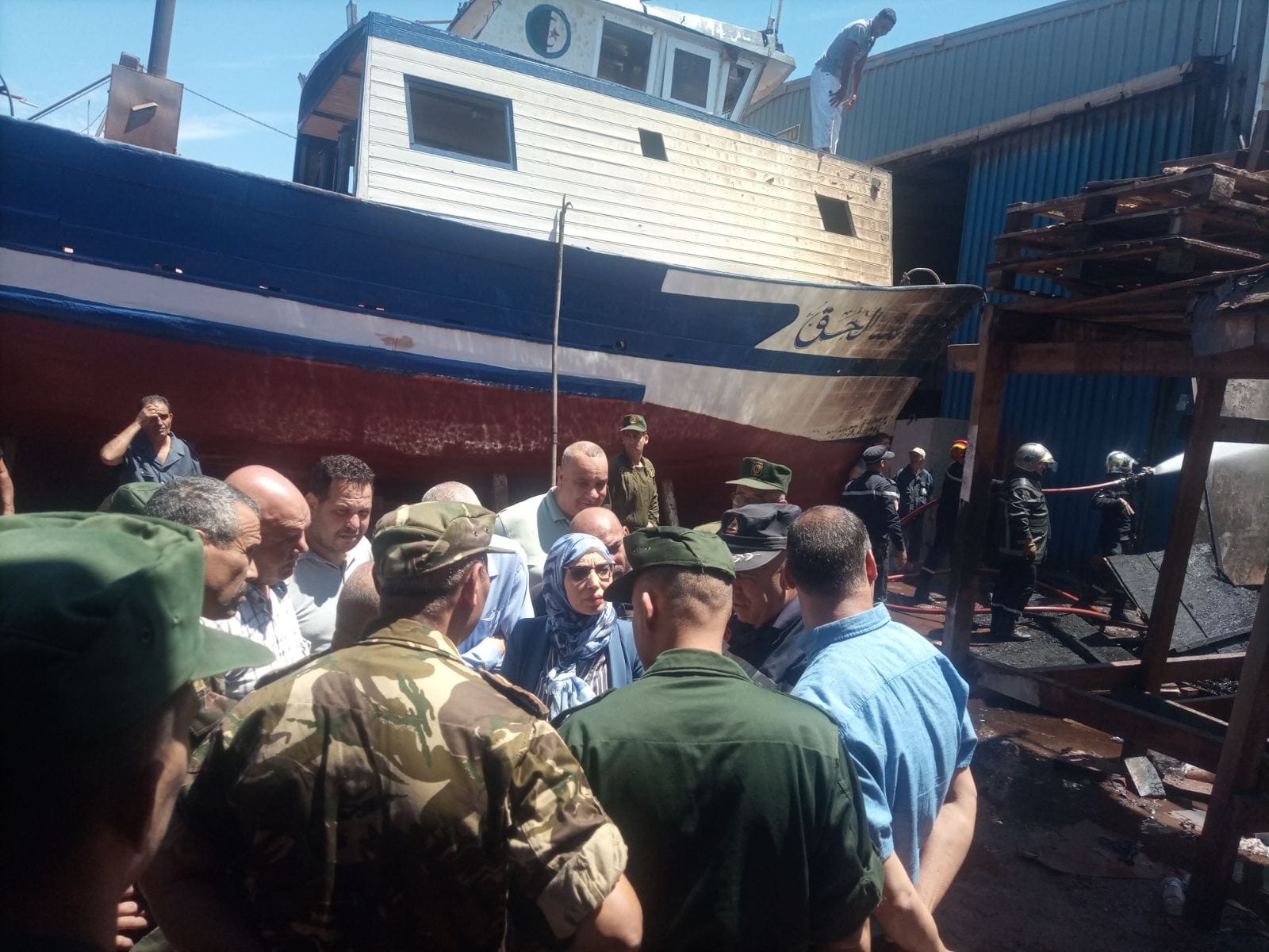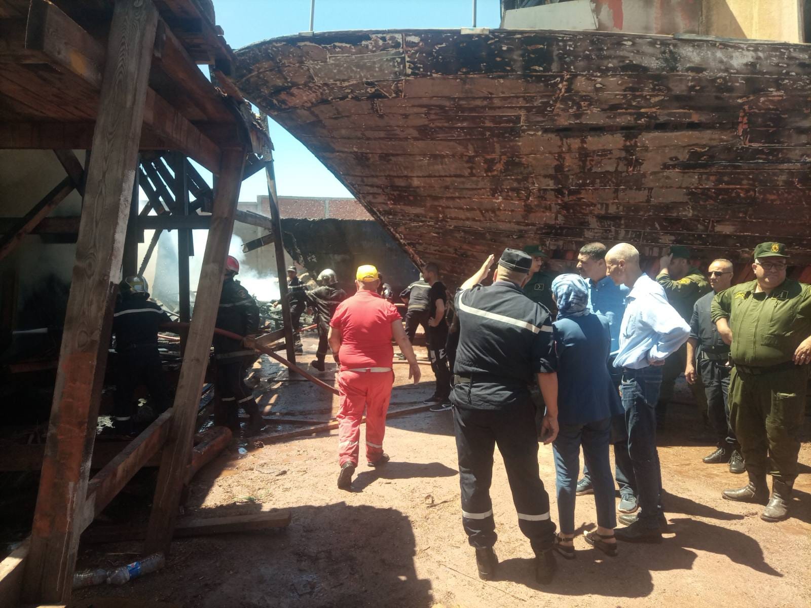 الحريق اندلع في حدود الساعة 12:34، في سفينتين في طور الإنجاز. وقد سُخّرت 5 شاحنات إطفاء لإخماده، حسب ما ذكرته ذات المصالح في بيان.