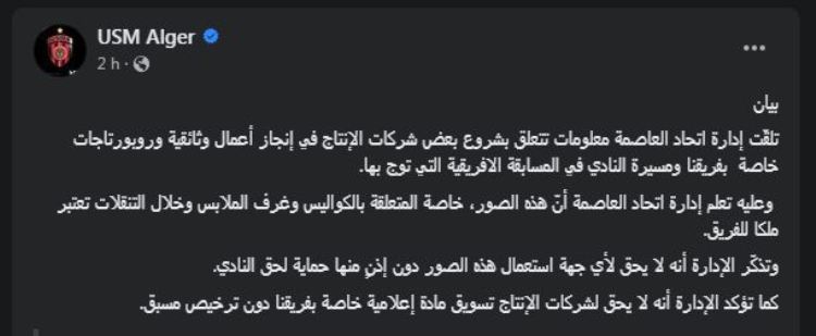 قالت إدارة نادي اتحاد العاصمة إنّها ترفض رفضا قاطعا، أن يستثمر غيرهم في صورة وانتصارات فريقها الكروي.