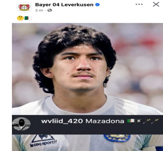 ونشرت الصفحة الرسمية لنادي باير ليفركوزن، صورة شبهت فيها إبراهيم مازا، بمارادونا، وكتبت في أسفلها “مازادونا”.