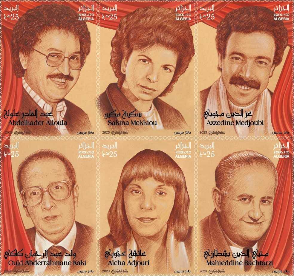 كما تشمل الطوابع تكريمًا لعدد من رموز ما بعد الاستقلال، على غرار عبد الرحمان كاكي، مبدع “الغراغوز”، وعبد القادر علولة، الذي تميز بمسرح جمع بين بساطة اللغة وعمق الفكر، وعز الدين مجوبي، صاحب مسرحية “حافلة تسير”، إلى جانب سكينة مكيو، المعروفة فنيًا بـ”صونيا”، التي صنعت لنفسها مكانة كممثلة ومخرجة ذات أثر دائم.