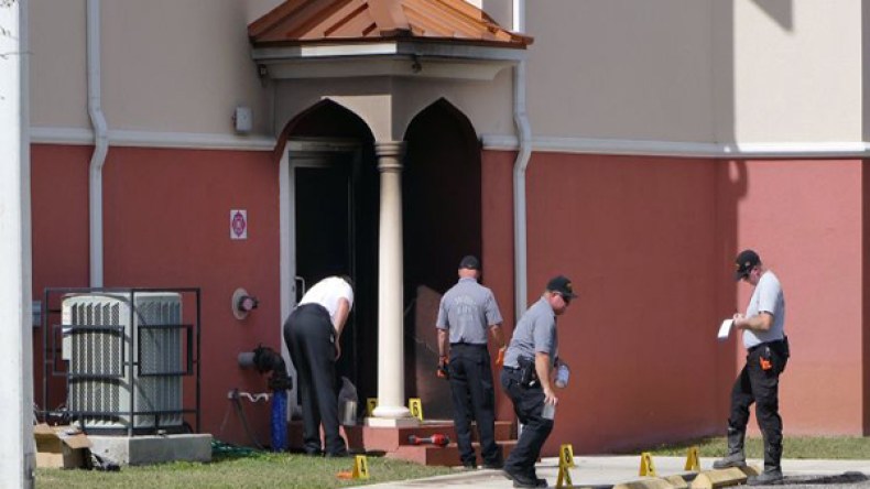 محققون يعاينون الأضرار الناجمة عن حريق مسجد تامبا