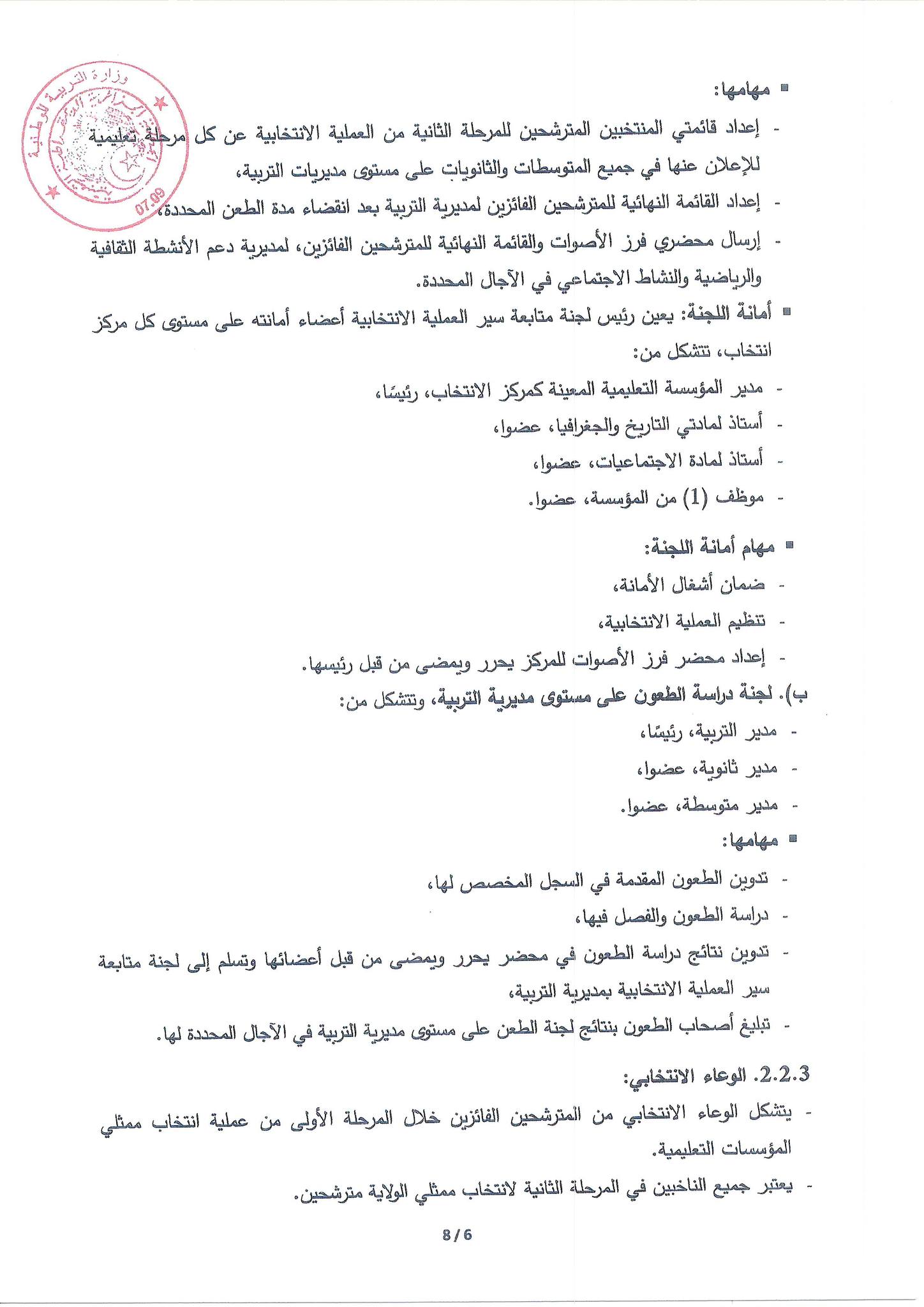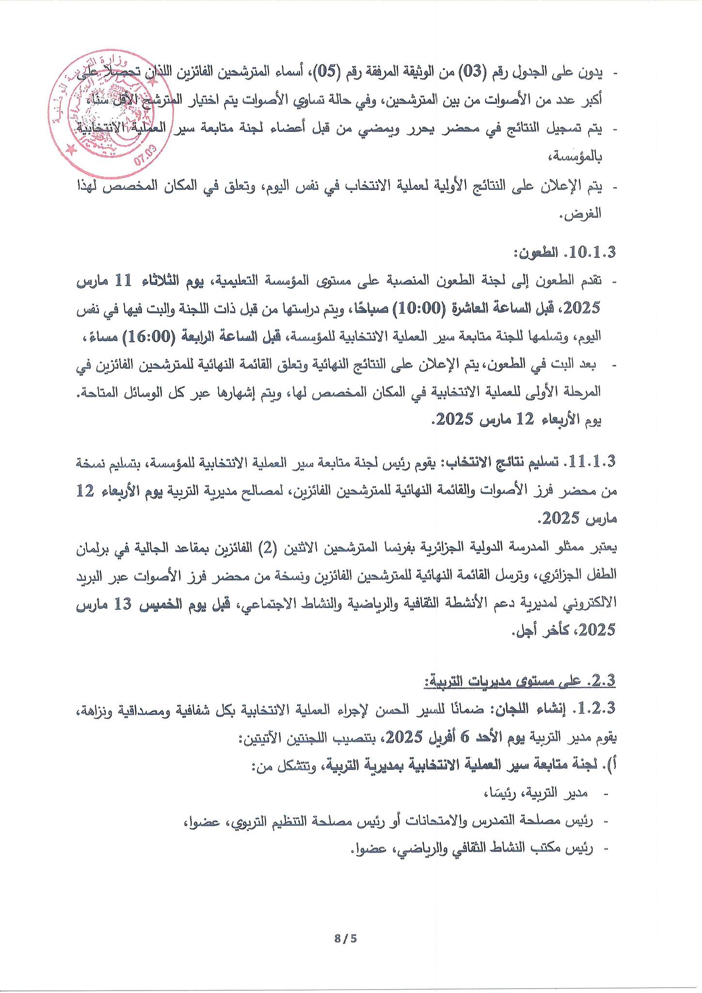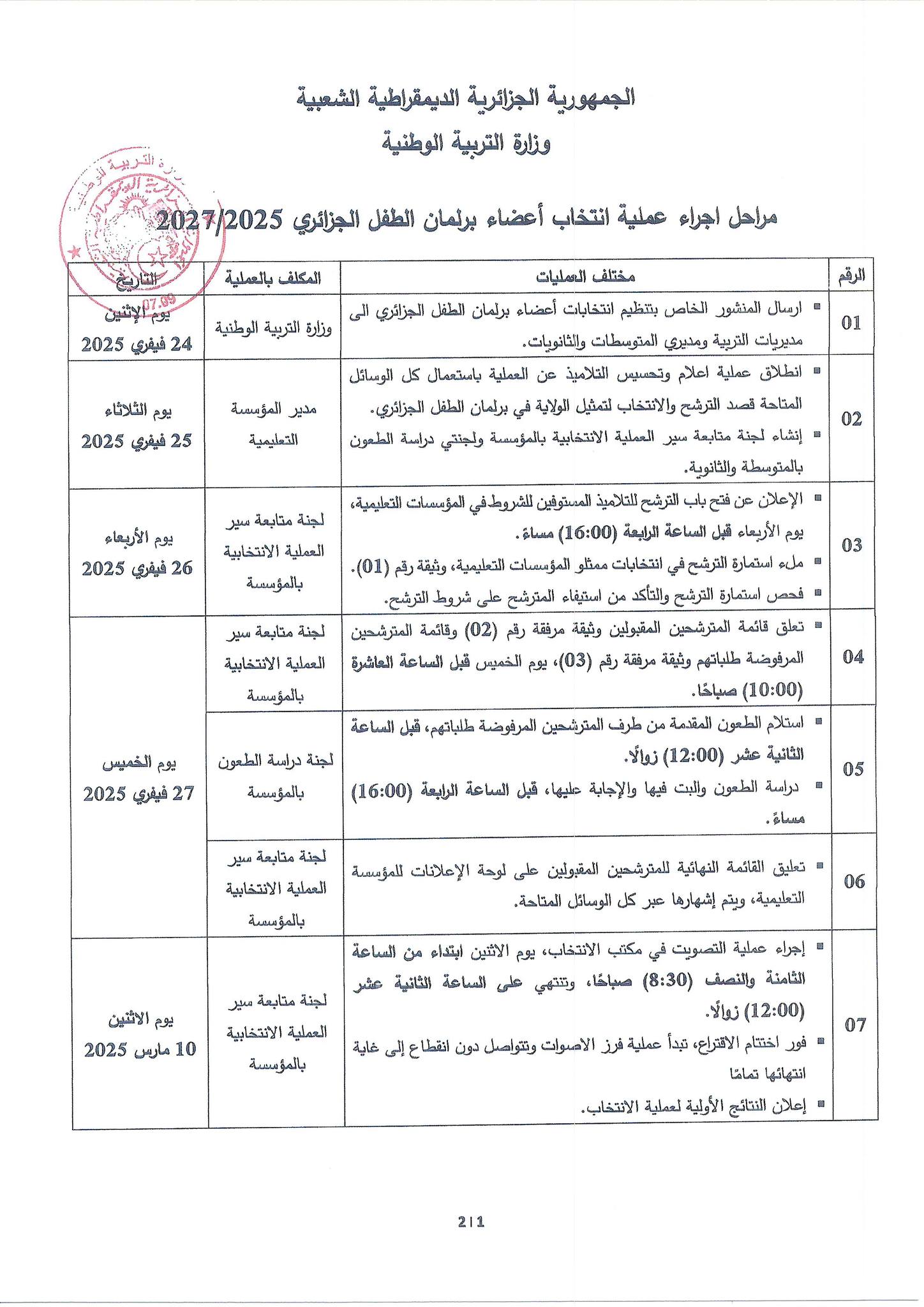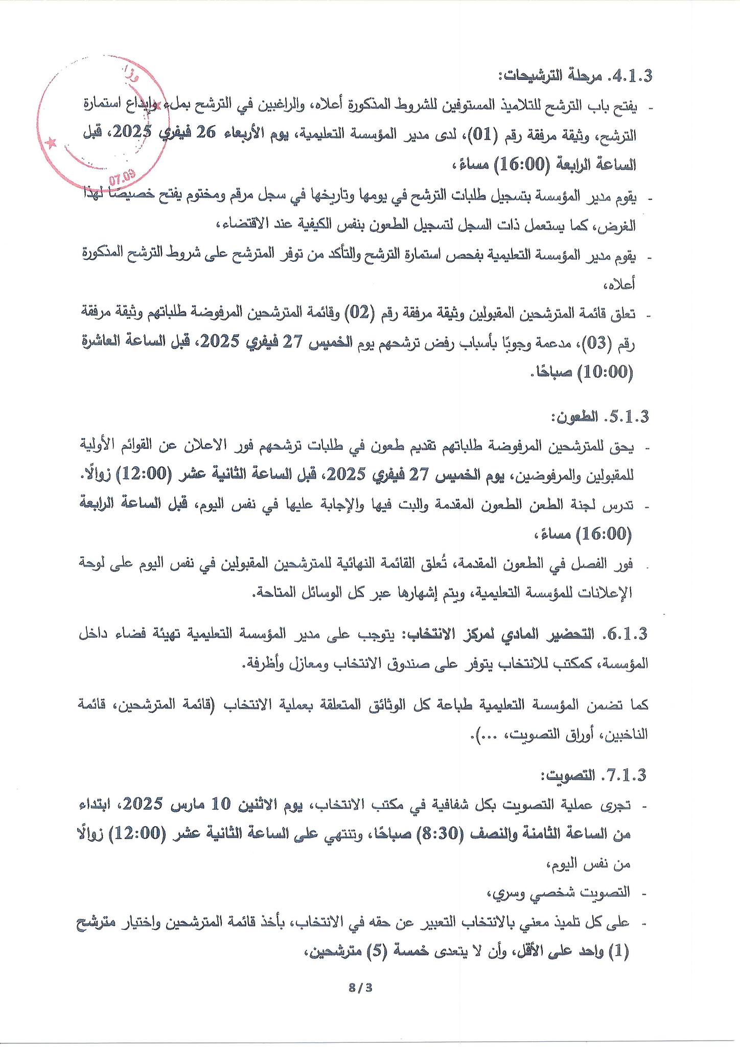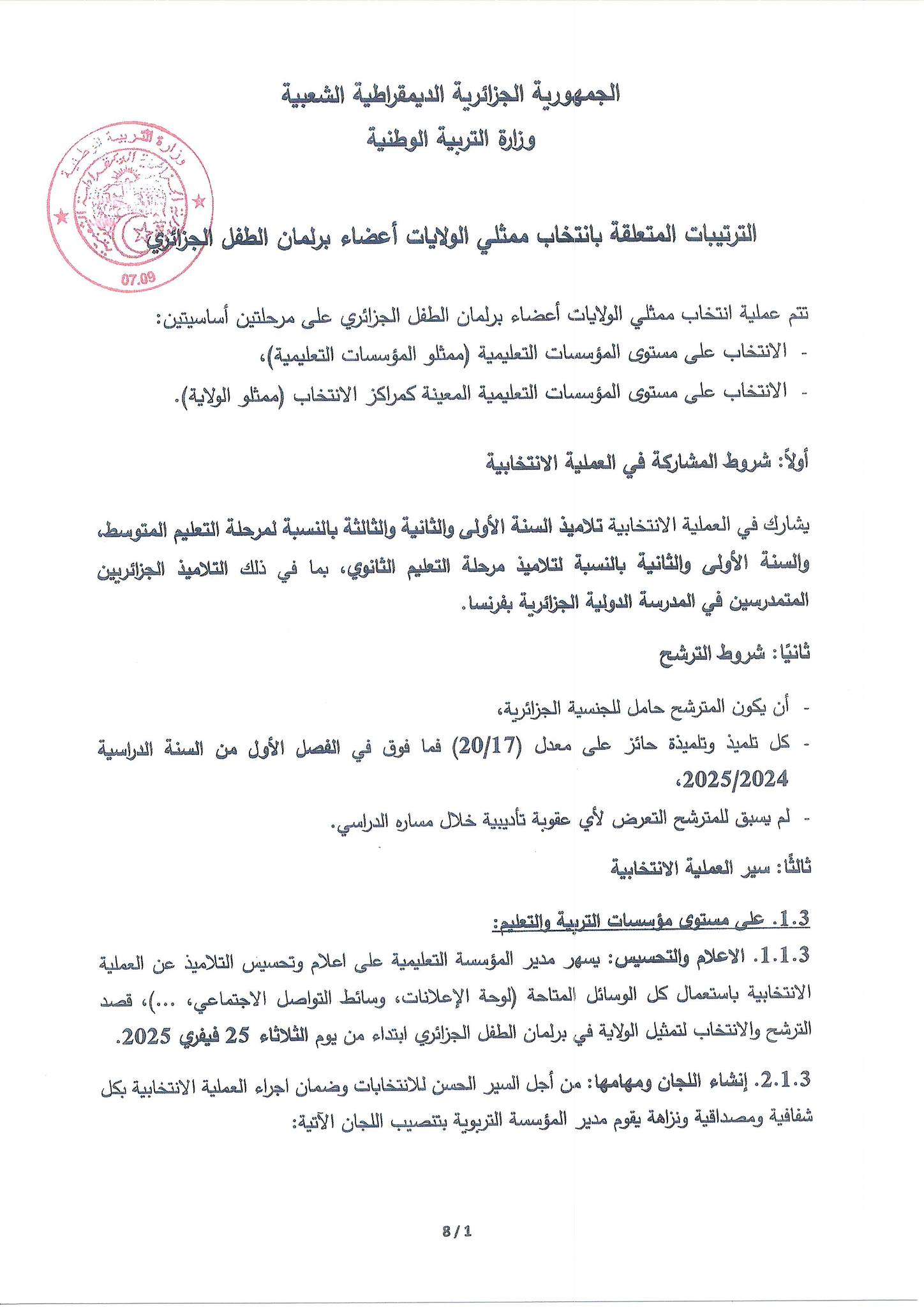 كما ستتولى مديريات التربية تنظيم الانتخابات ومتابعة سيرها وفقًا للترتيبات المحددة، لضمان الشفافية والمشاركة العادلة لجميع التلاميذ المؤهلين.