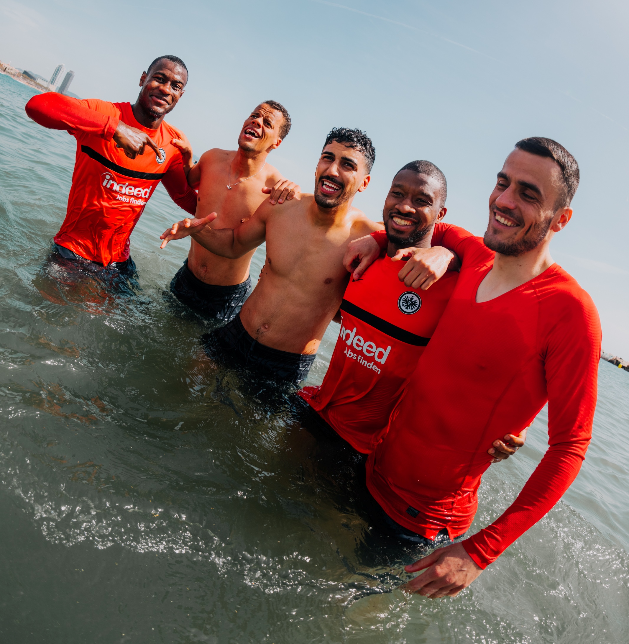 ارتاد لاعبو فريق إنتراكت فرانكفورت الألماني، الجمعة، البحر بِمدينة برشلونة الإسبانية للسباحة، رغم أن الفصل والمكان لا يُشيران إلى الصّيف والحرّ!