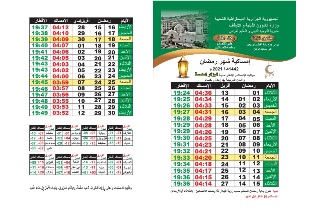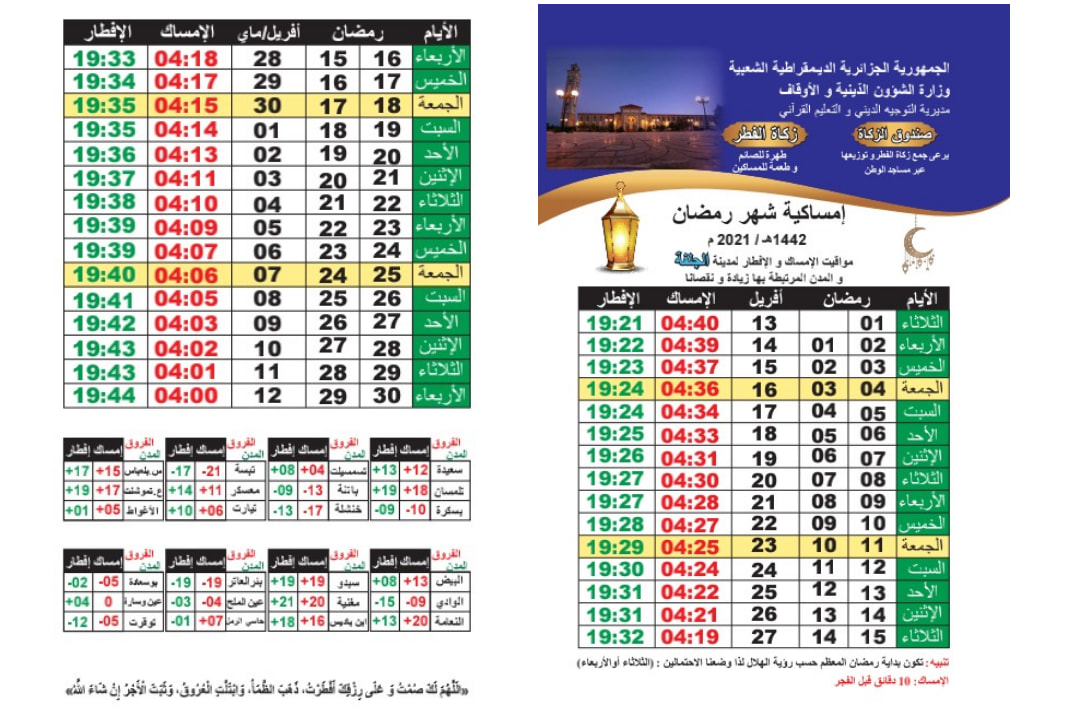 إمساكية رمضان 2021.. تعرف على عدد ساعات الصيام بمختلف الولايات الجزائرية