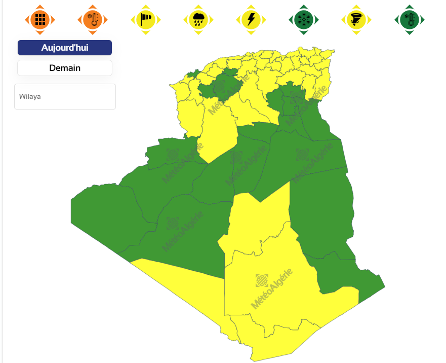 نبه الديوان الوطني للأرصاد الجوية في نشرية جديدة حول حالة الطقس ليوم الجمعة من تساقط أمطار رعدية غزيرة عبر 8 ولايات تستمر إلى غاية يوم غد السبت.